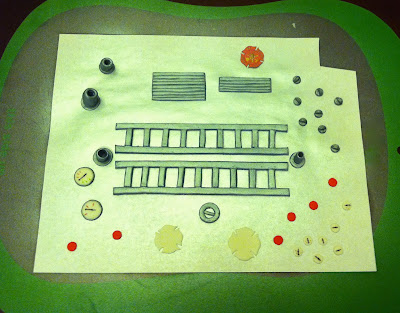 I used Wilton fondant because I didn't think I should try to make my own fondant on the same occasion I tried using fondant for the first time. I bought two 24oz boxes of the red, and small packages of the white, grey, and black. I colored some of the white yellow with ordinary food coloring for some hoses. I have fondant left over.